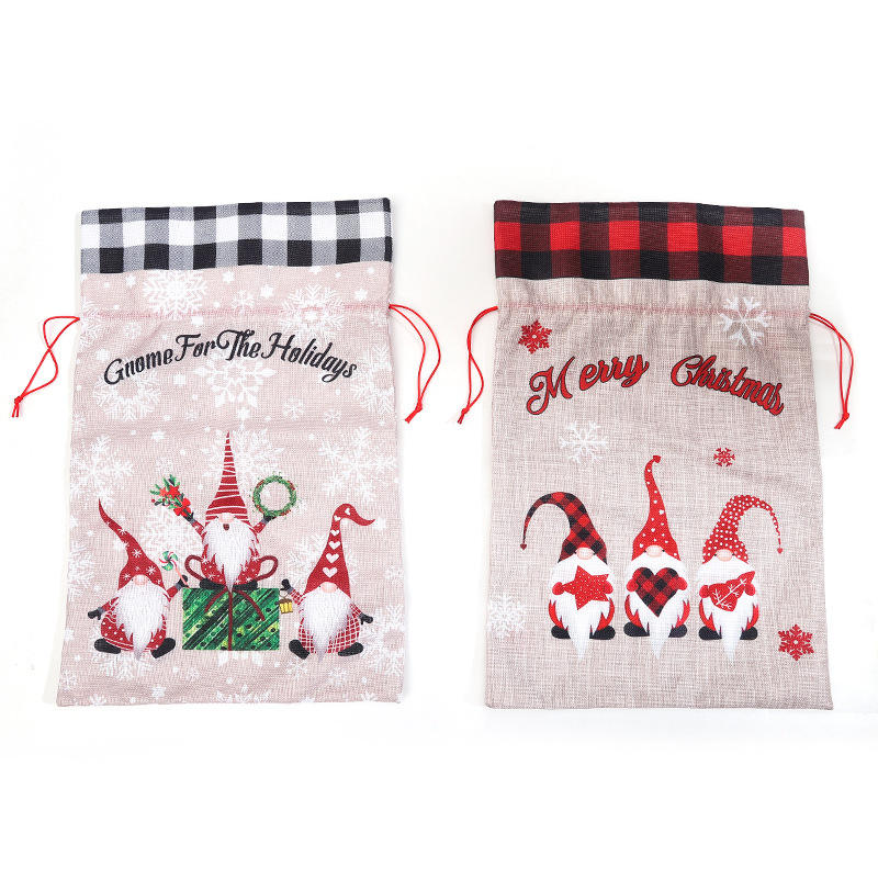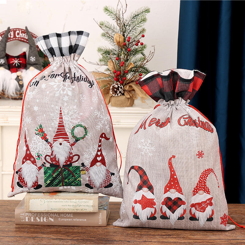 ถุงของขวัญแบบมีเชือกผูก ลายป่าการ์ตูน ทำจากผ้าปอกระเจา รีไซเคิลได้ ออกแบบหรูหรา ลายตารางหมากรุก สำหรับผู้สูงอายุ