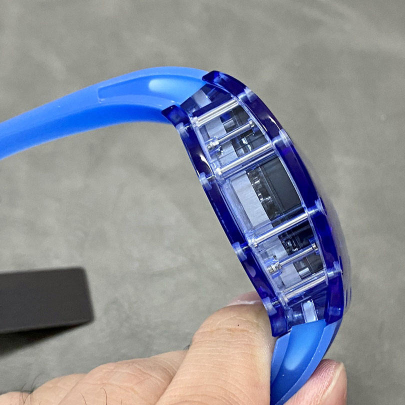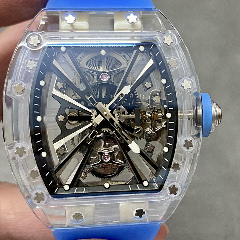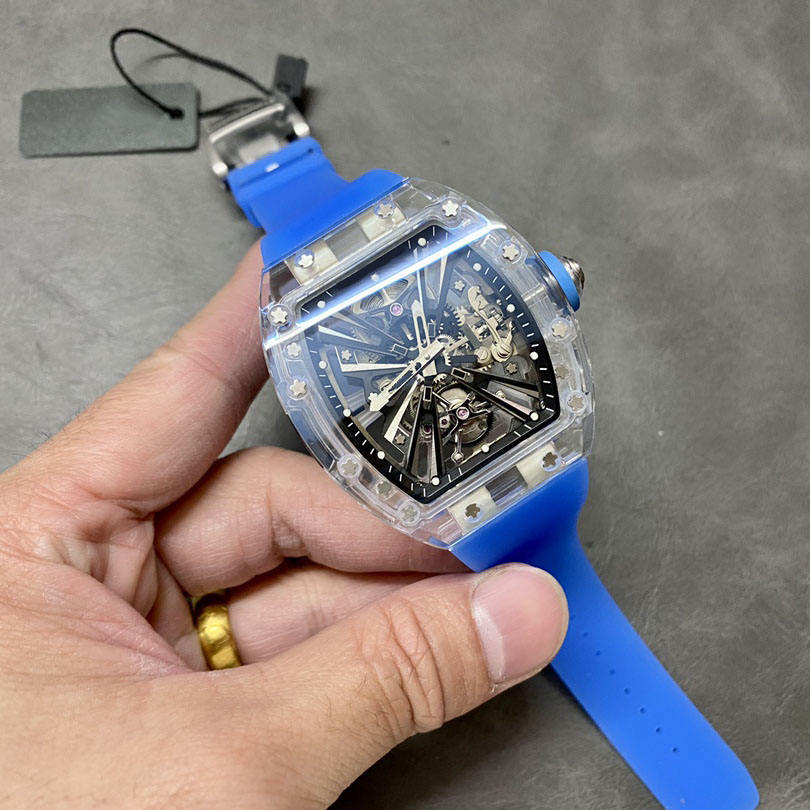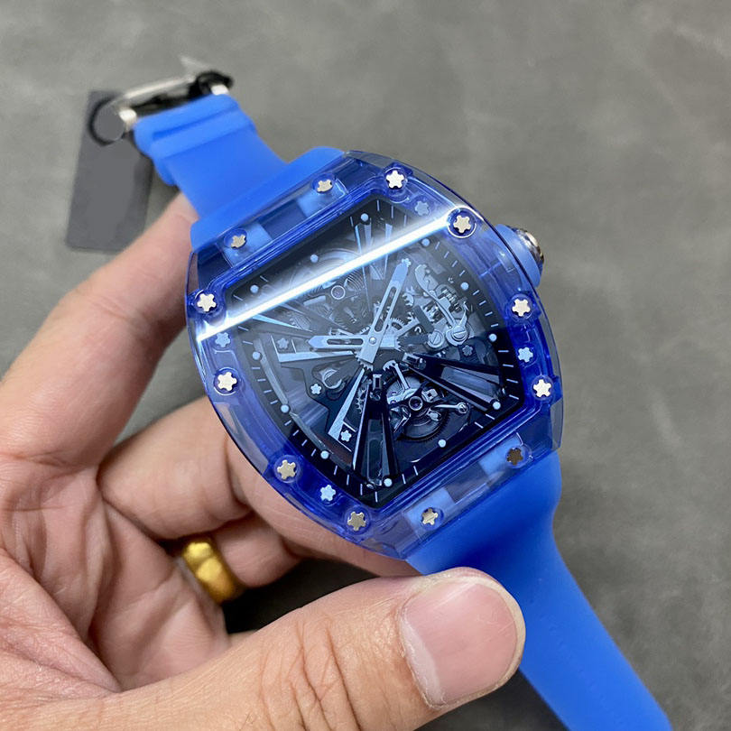 นาฬิกาอัตโนมัติสุดหรูสำหรับคริสต์มาส กระจกแซฟไฟร์ ทรงกระบอก ระบบตูร์บิญอง ตัวเรือนทรงสี่เหลี่ยม สายยาง 22 มม. หน้าปัดแบบเข็ม