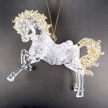 ตกแต่งปีใหม่คริสต์มาสใสด้วยสีทองแมตต์ภายในอะคริลิ 3D เครื่องประดับม้าสัญลักษณ์ปี 2025 2026