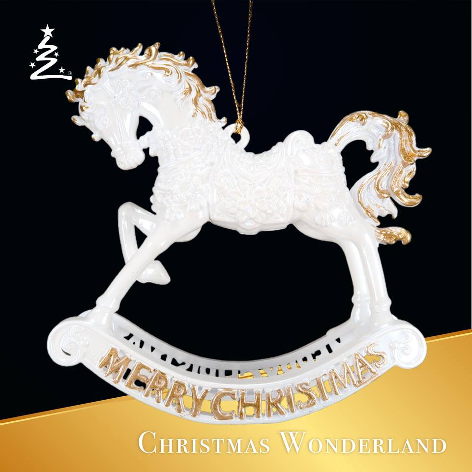 ของตกแต่งรูปม้าสีขาวทองมันวาวใช้ตกแต่ง3D คริสมาสต์รูปม้า