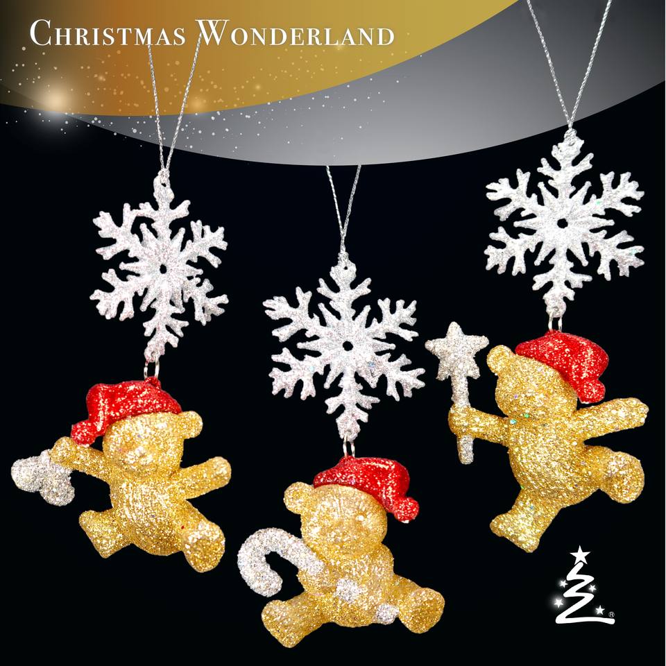 คริสมาสต์ปีใหม่ตกแต่งขายส่งร้อนขายทองสีแดงเงินอะคริลิหมีกับเกล็ดหิมะเครื่องประดับ