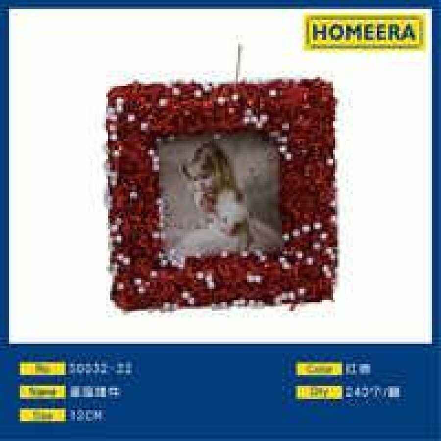 เครื่องประดับคริสต์มาสทรงสี่เหลี่ยมสีแดงกรอบลูกปัดใส่รูปภาพทำด้วยมือตกแต่งวันหยุด