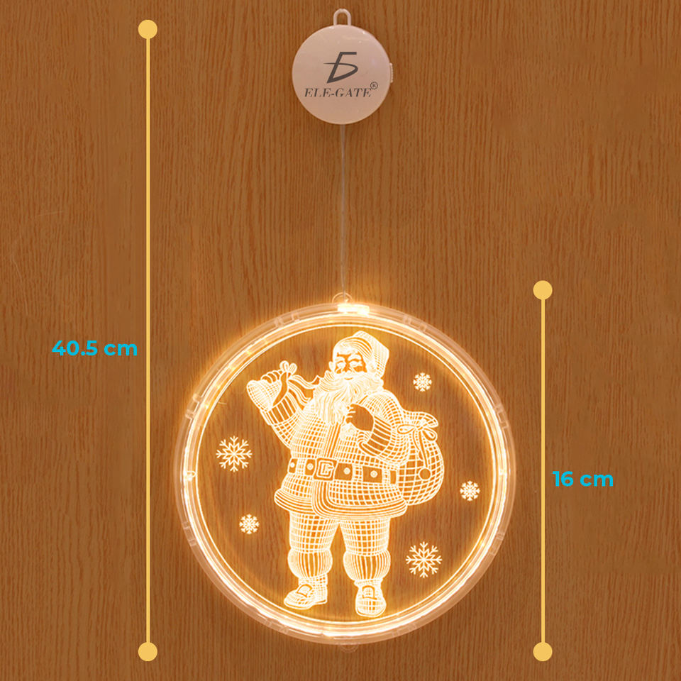 ไฟประดับตกแต่งคริสต์มาสแบบแขวนกลางแจ้ง อะคริลิกใส LED พร้อมจุกดูดสุญญากาศ สำหรับใช้ภายในและภายนอกอาคาร