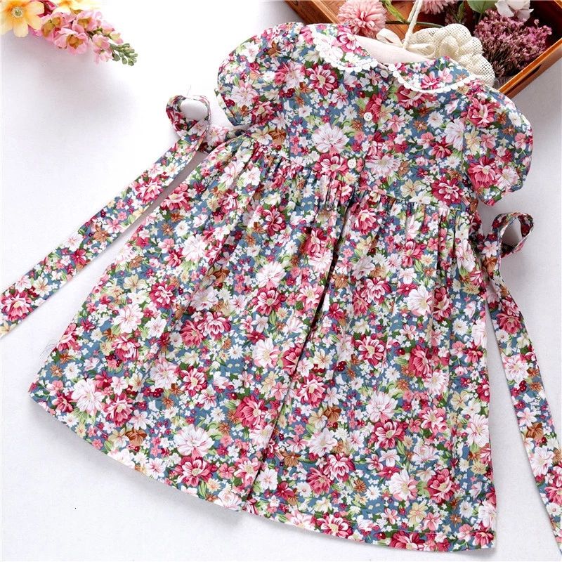 บูติกดอกไม้วันหยุดทำด้วยมือชุดสาว smocked 3ถึง5ปี