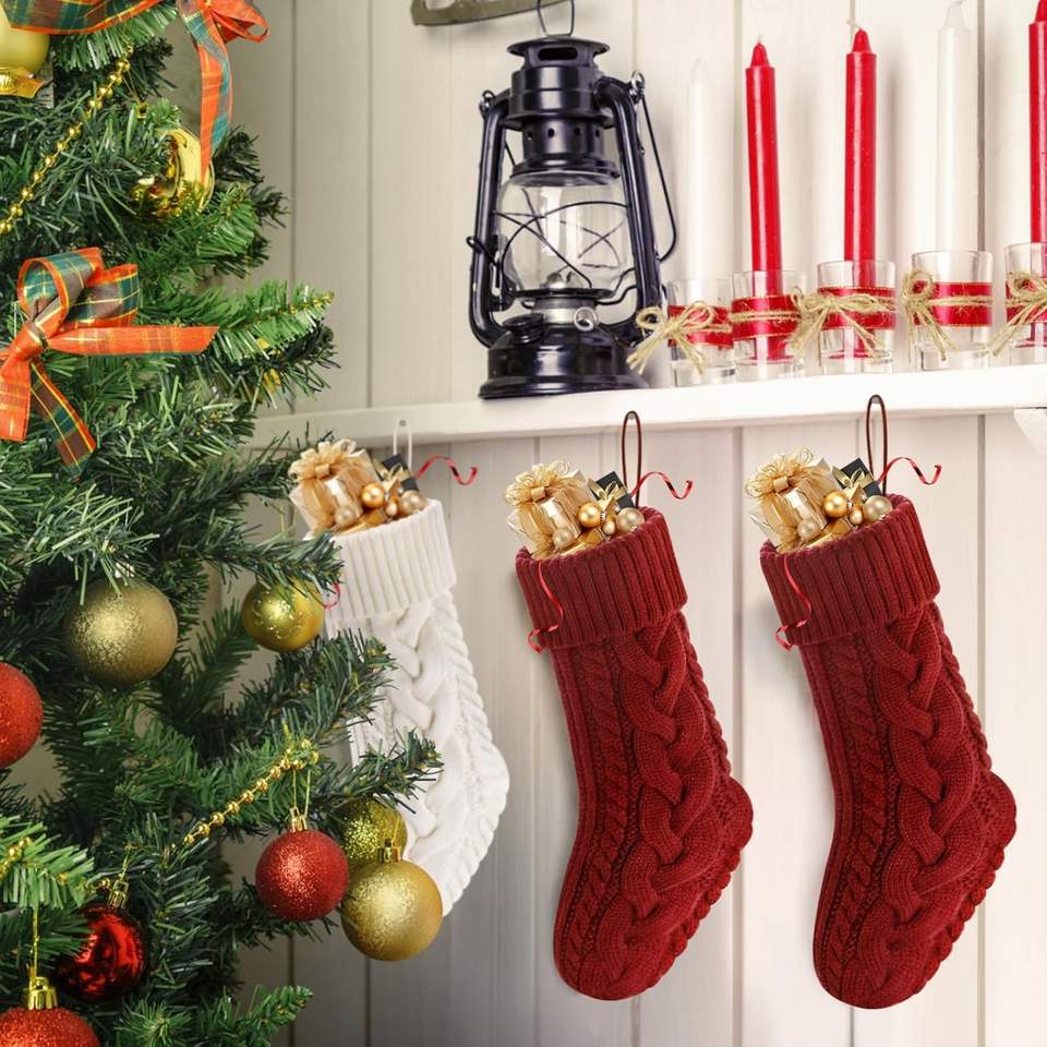 ถุงน่องคริสต์มาสสีแดงสายถักขนาดใหญ่18นิ้วสำหรับตกแต่งงานปาร์ตี้คริสต์มาส