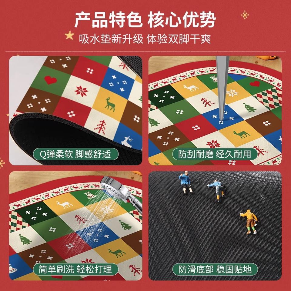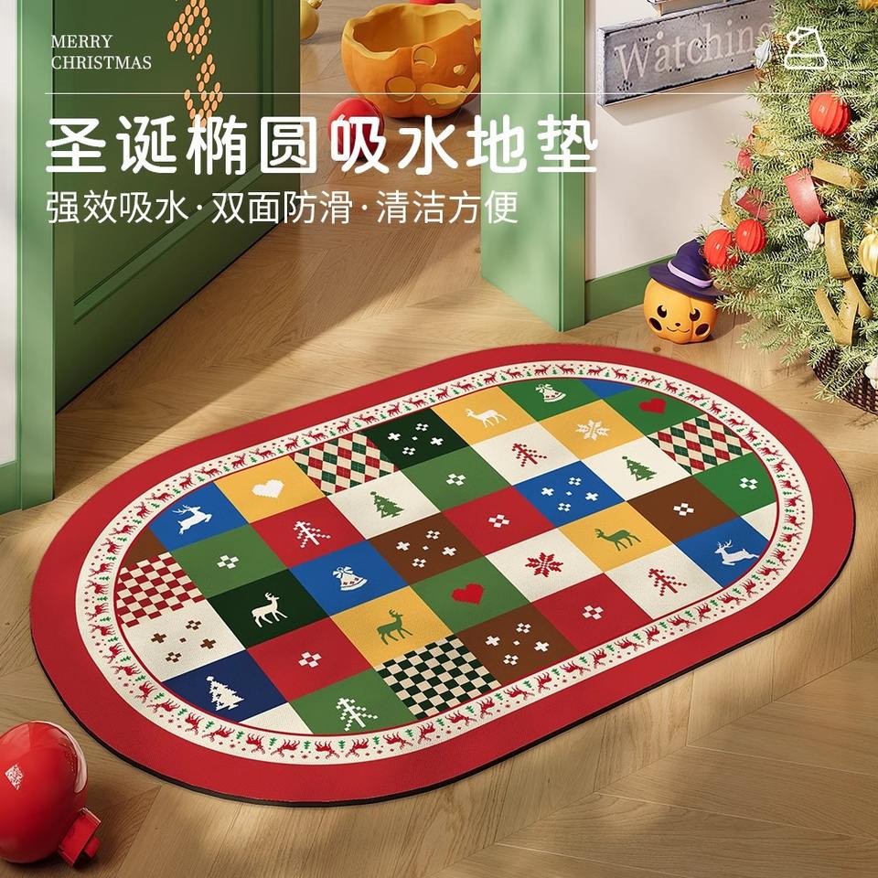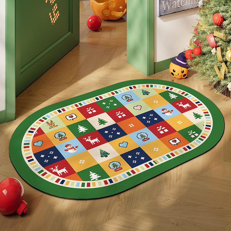 พรมเช็ดเท้ารูปวงรีลายคริสต์มาส ทำจากดินไดอะตอมเมียซ ป้องกันการลื่น สำหรับห้องน้ำ อ่างล้างหน้า ห้องส้วม และพื้นบ้าน