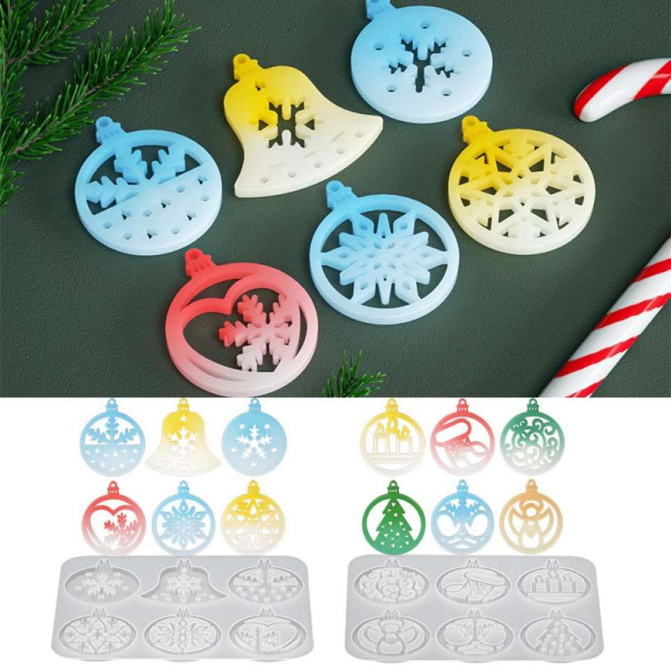 แม่พิมพ์ซิลิโคนเรซิ่นยิปซั่มสำหรับทำเครื่องหอมรูปกระดิ่งเกล็ดหิมะทรงกลมสำหรับเทศกาลคริสต์มาส