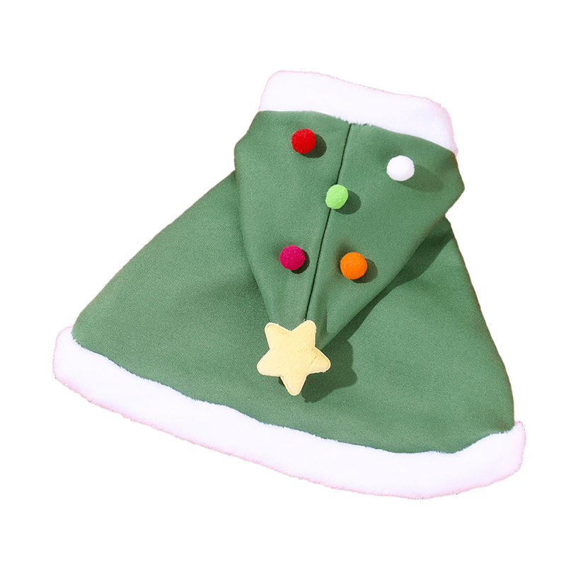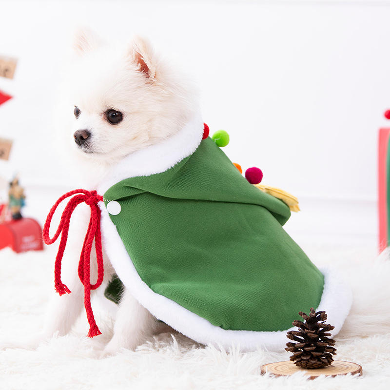 Christmas Pet Cloak Cape for Small Medium Dogs - Adjustable Holiday Tree Costume with Hood Soft Warm Wear