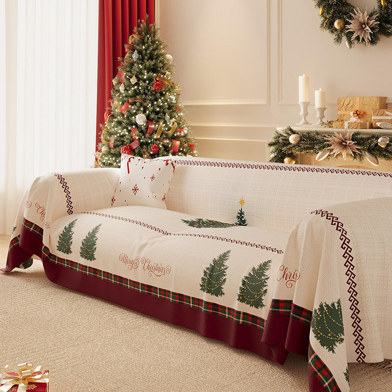 Christmas Plaid Sofa Cover Full Coverage Non Slip Imitation Linen Machine Washable Pad Type For General Sofas