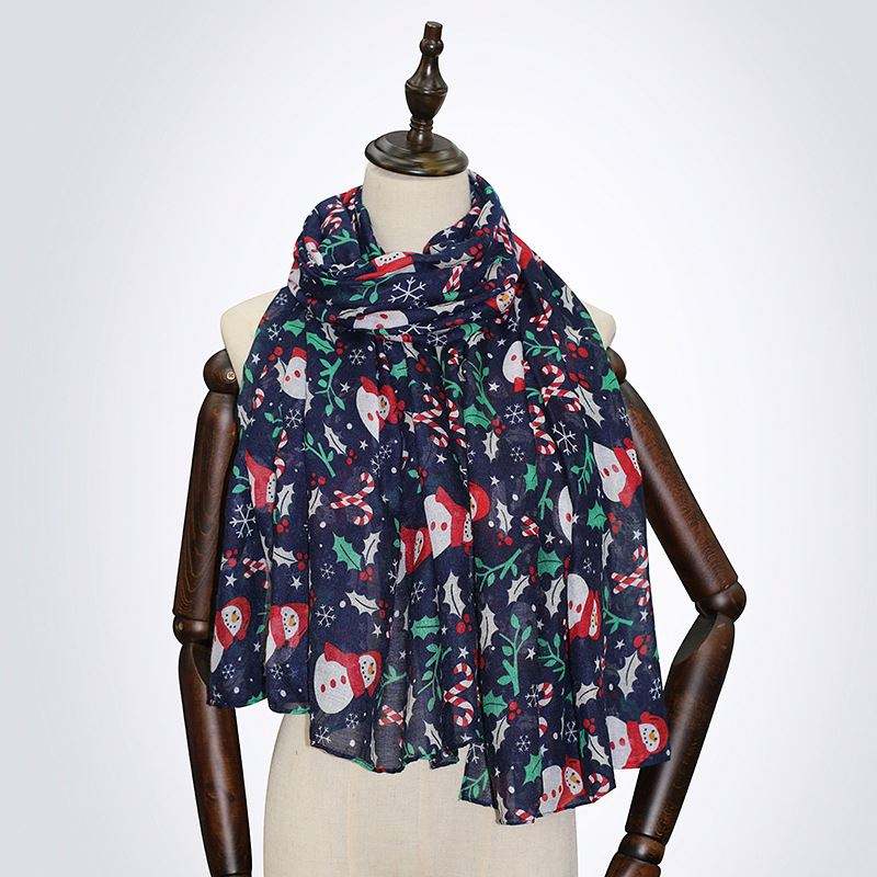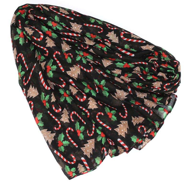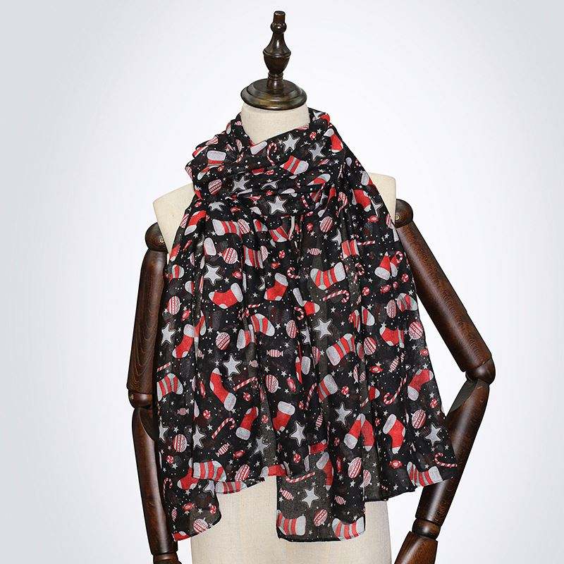 ผ้าพันคอพิมพ์ลายคริสต์มาส ลายเกล็ดหิมะและไม้เท้า ผ้าพันคอพิมพ์ลายคริสต์มาสสำหรับผู้หญิง ผ้าคลุมไหล่ไหมพรม ของขวัญ แต่งกาย อุปกรณ์เสริมตกแต่ง