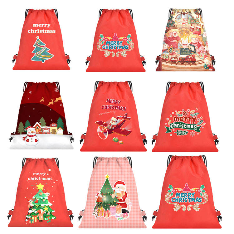 สินค้าคริสต์มาส อุปกรณ์จัดงานปาร์ตี้ ถุงผ้ารูดแฟชั่นแบบใช้ซ้ำได้ ถุงของขวัญน้ำหนักเบาทำจากโพลีเอสเตอร์สำหรับอุปกรณ์เสริมคริสต์มาส