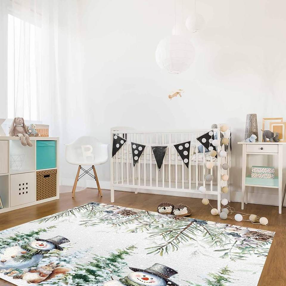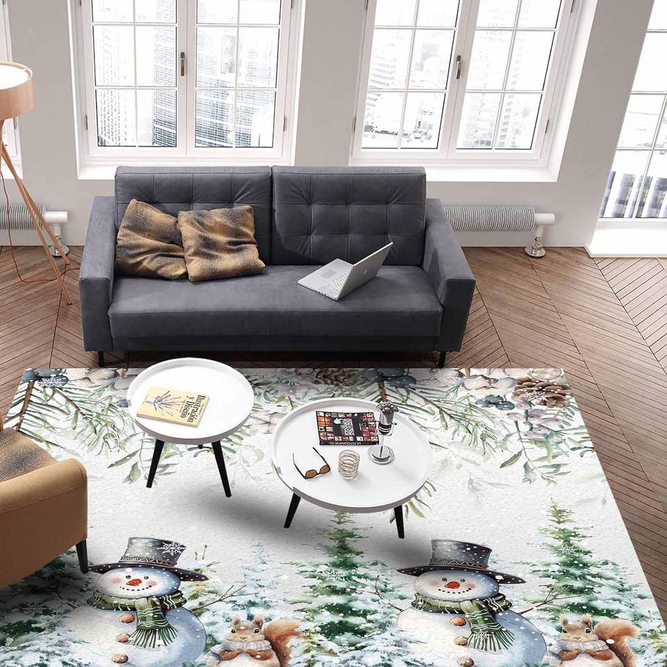 พรมปูพื้นพื้นที่ลายตุ๊กตาหิมะสำหรับฤดูหนาวต้นคริสต์มาสและเกล็ดหิมะกระรอกพรมกันลื่นสำหรับห้องนอนห้องนั่งเล่นของตกแต่งบ้าน