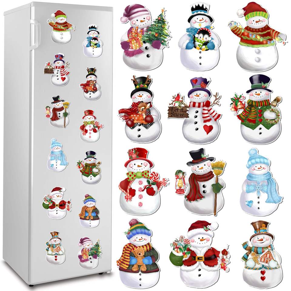 ชุดแม่เหล็กติดตู้เย็นและแม่เหล็กติดรถยนต์ลายตุ๊กตาหิมะคริสต์มาสยอดนิยม กันน้ำ สำหรับตกแต่งงานปาร์ตี้