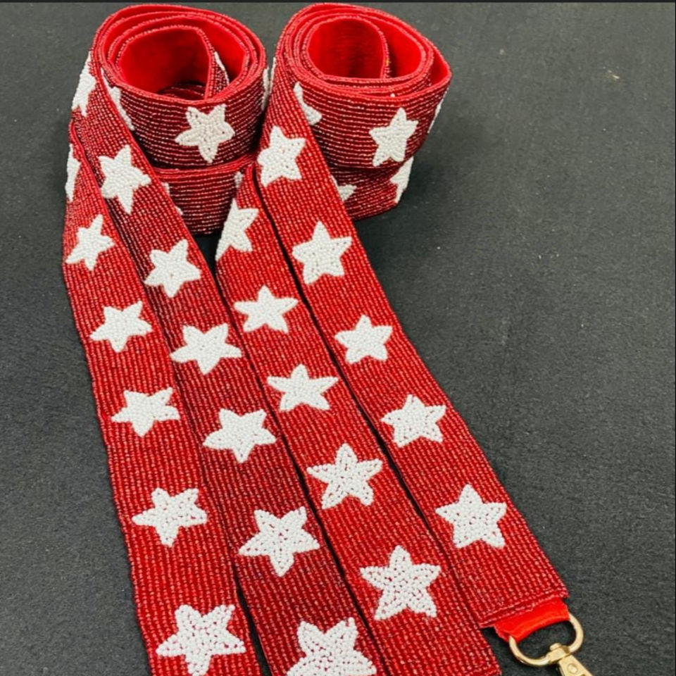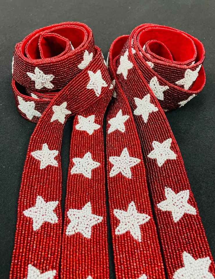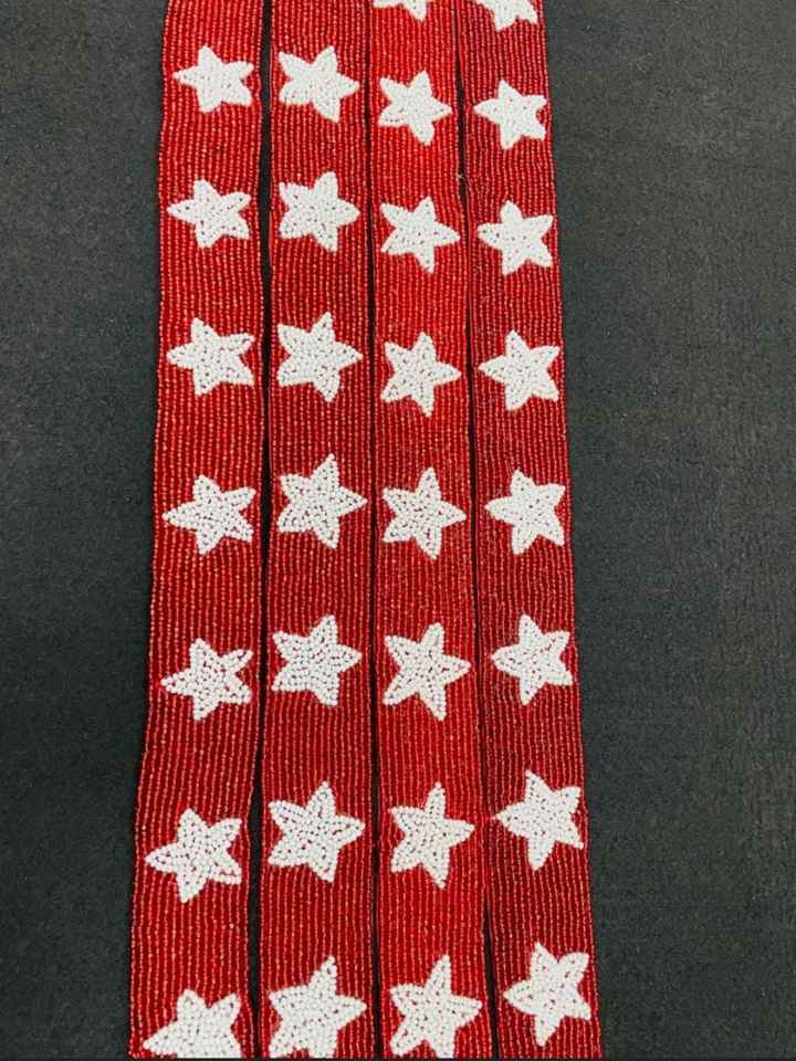 Christmas Special Cotton Beaded Strap Red Base with White Star Design for Mobile Phone