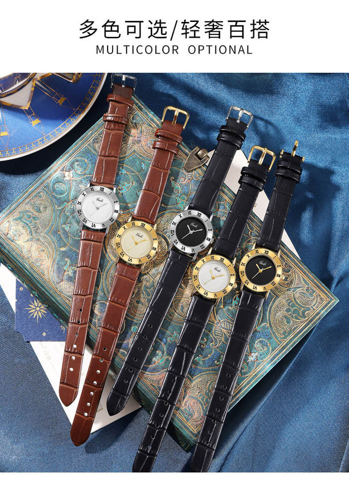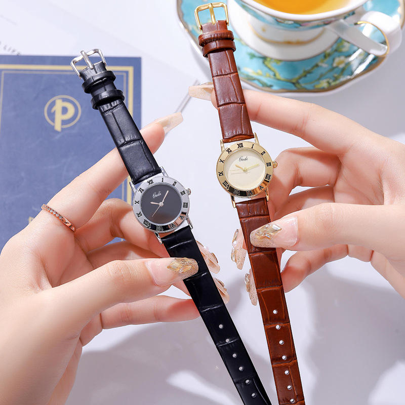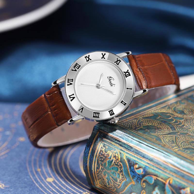 นาฬิกาควอตซ์ของผู้หญิงหนังแท้หรูหราพิเศษสำหรับเทศกาลควอตซ์เรียบง่ายหรูหราสายหนังกันน้ำ