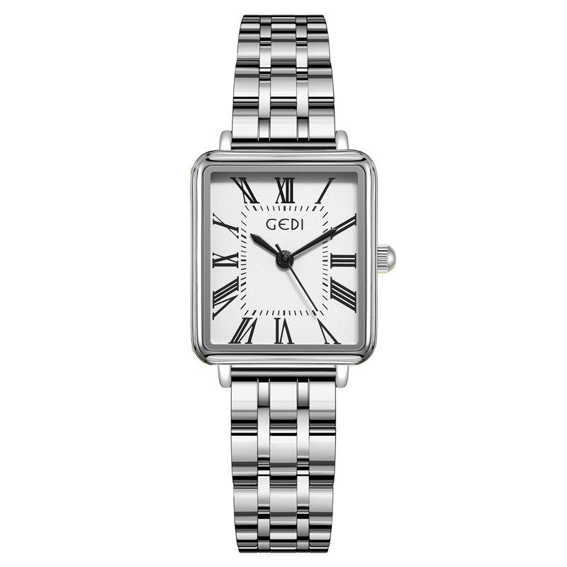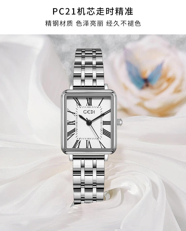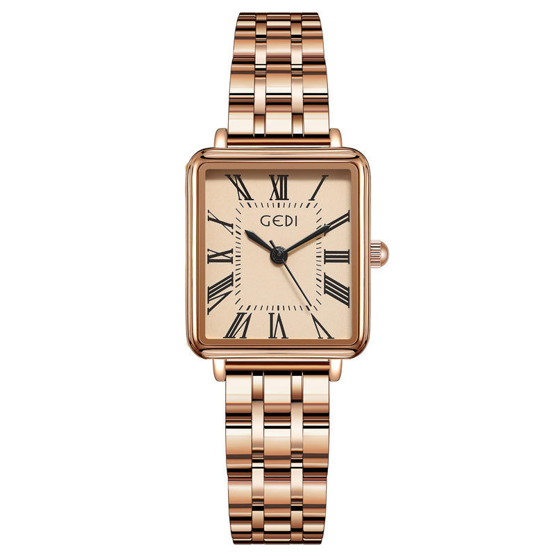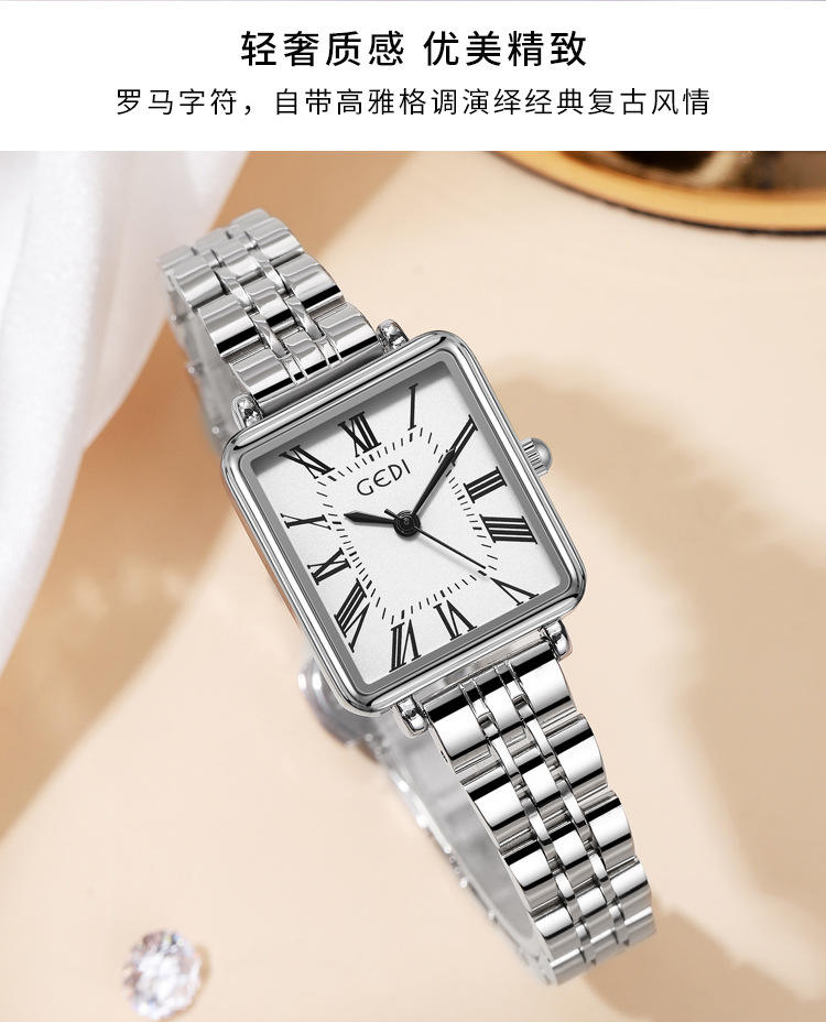 นาฬิกาควอทซ์ทรงสี่เหลี่ยมสำหรับผู้หญิงทำจากสแตนเลสสตีลแข็งแบบโรมันพิเศษสำหรับเทศกาลคริสต์มาส