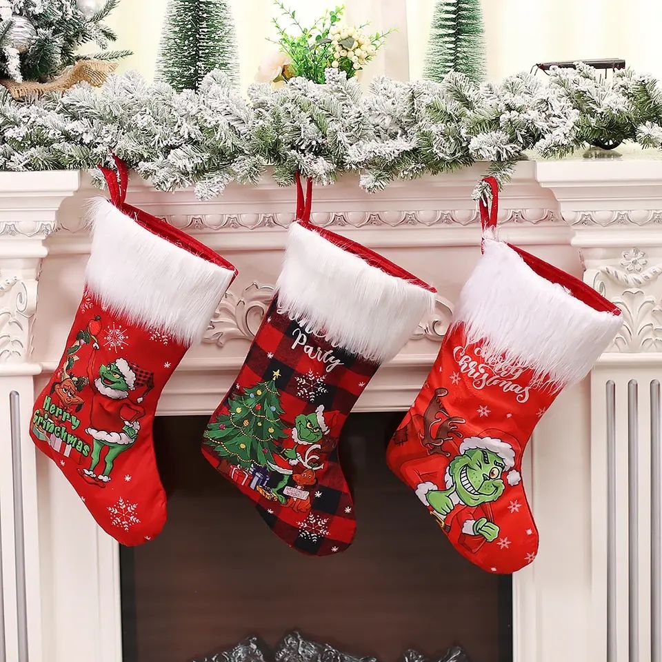 Christmas Stockings Sack Xmas Gift Candy Bag Christmas Decorations for Home Navidad 2024 New Year Sock Christmas Tree Decor