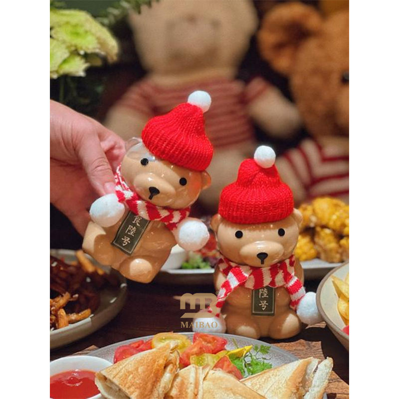 ขวดเครื่องดื่มพลาสติกสำหรับสัตว์เลี้ยงรูปทรงหมีพร้อมฝาปิดสำหรับเครื่องดื่มเย็นชาฟองนม