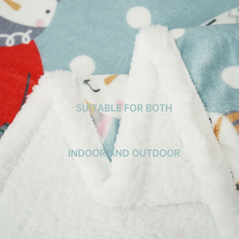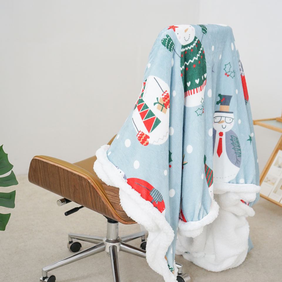 ผ้าห่มขนแกะเชอร์ปาสำหรับตกแต่งผ้าห่มขนนุ่มสำหรับตุ๊กตาหิมะฤดูหนาวสีฟ้าสำหรับเทศกาลคริสต์มาส
