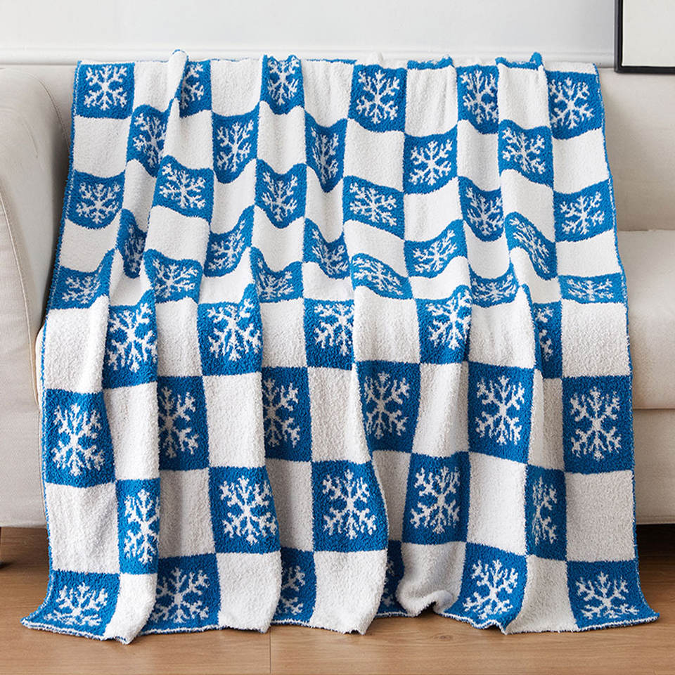 ผ้าห่มผ้าสักหลาดนุ่มสำหรับตกแต่งคริสต์มาสผ้าห่มนุ่มแบบคลาสสิกลายเกล็ดหิมะ