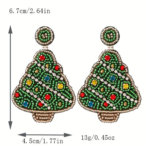 ต่างหูต้นคริสต์มาสเครื่องประดับเมล็ดลูกปัดเครื่องประดับวันหยุดต่างหูลูกปัดเทศกาลเครื่องประดับต่างหูคริสต์มาส
