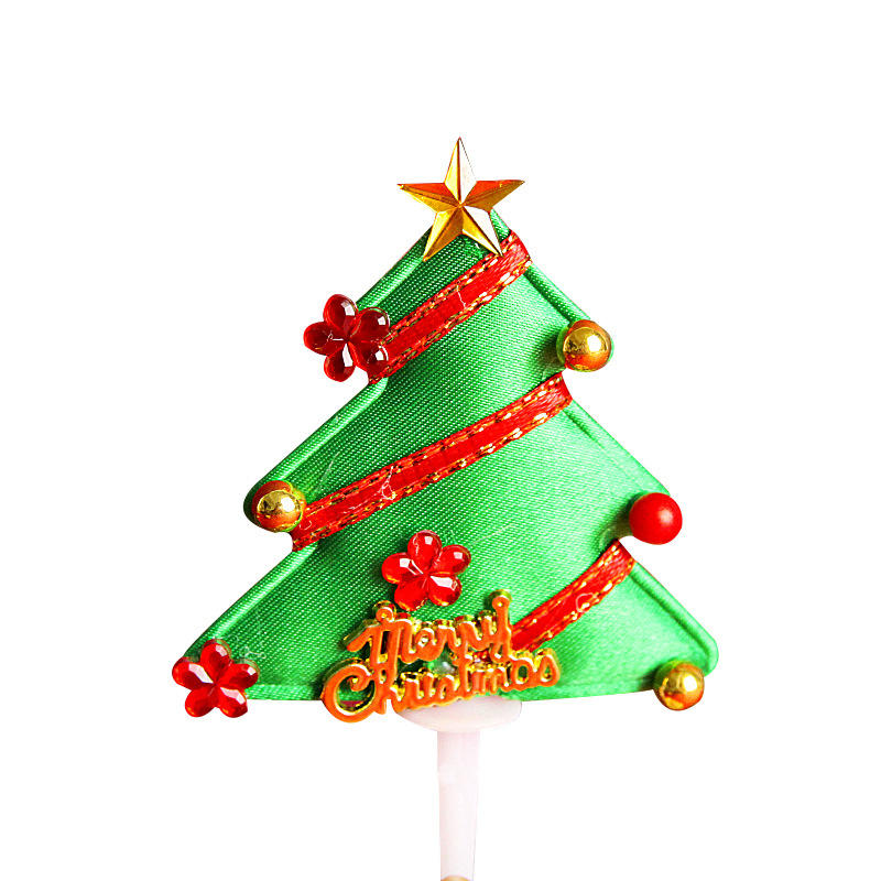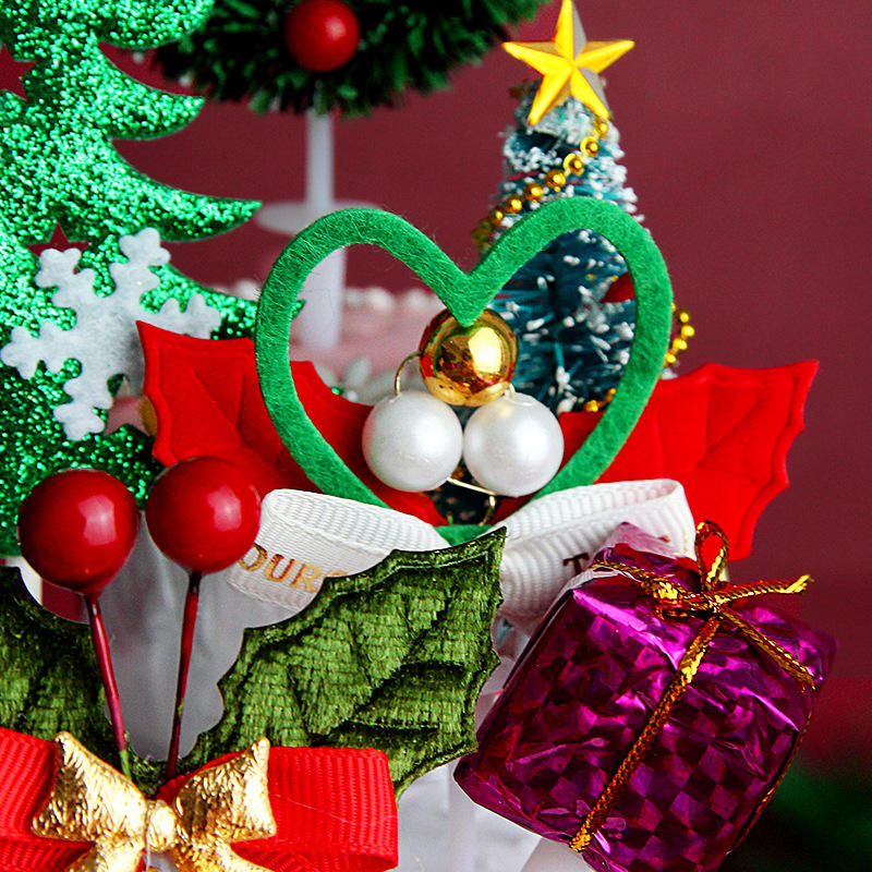 ของตกแต่งเค้กรูปพวงมาลัยต้นคริสต์มาส พร้อมธงและการ์ด วัสดุผ้า ขนาด 10x10x10 ซม.
