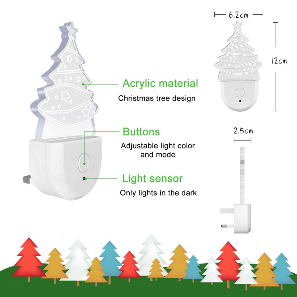 ไฟต้นคริสต์มาสแบบเสียบปลั๊กติดผนัง ไฟกลางคืนอะคริลิค 3 มิติ ประหยัดพลังงาน หลอดไฟ LED ตกแต่งบ้านช่วงเทศกาล