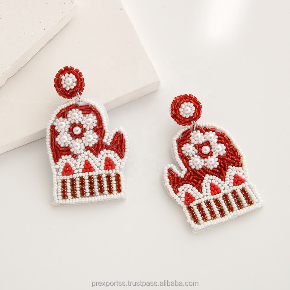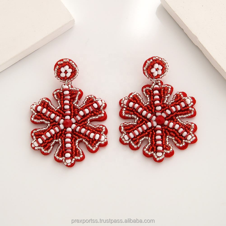 ต่างหูลูกปัดโบฮีเมียนลายดอกไม้สำหรับเทศกาลวันหยุดของขวัญชุดปาร์ตี้อินเทรนด์