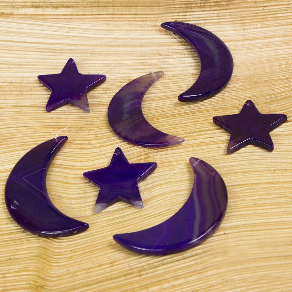 Christmas Wind Chime Dark Purple Slices Agate Half Moon Star Wind Chime Colorful Natural Agate Slices Wind Chimes for Home