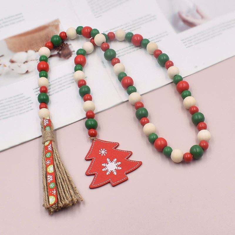 พวงมาลัยลูกปัดไม้คริสต์มาส ลายตุ๊กตาหิมะและซานตาคลอส งานแฮนด์เมด สีสันปรับแต่งได้ ตกแต่งชั้นวางของแบบหลายชั้น แขวนผนัง พร้อมพู่ผ้าลินิน
