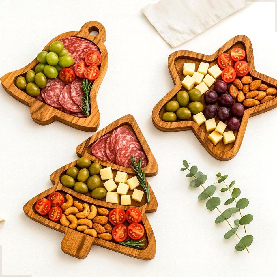 ถาดเสิร์ฟงานฝีมือโลหะสไตล์อาร์ตเดโคสำหรับคริสต์มาส เหมาะสำหรับใช้ในบ้านและโรงแรมในช่วงเทศกาล