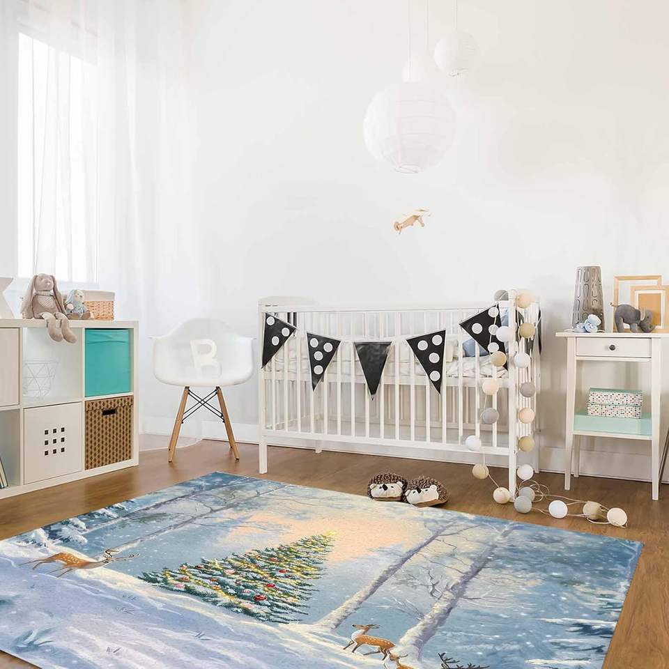 Christmas Xmas Tree Elk Snowflake Area Rug Non-Skid Boho Rectangular Carpet for Living Room Bedroom Home Decor in Stock