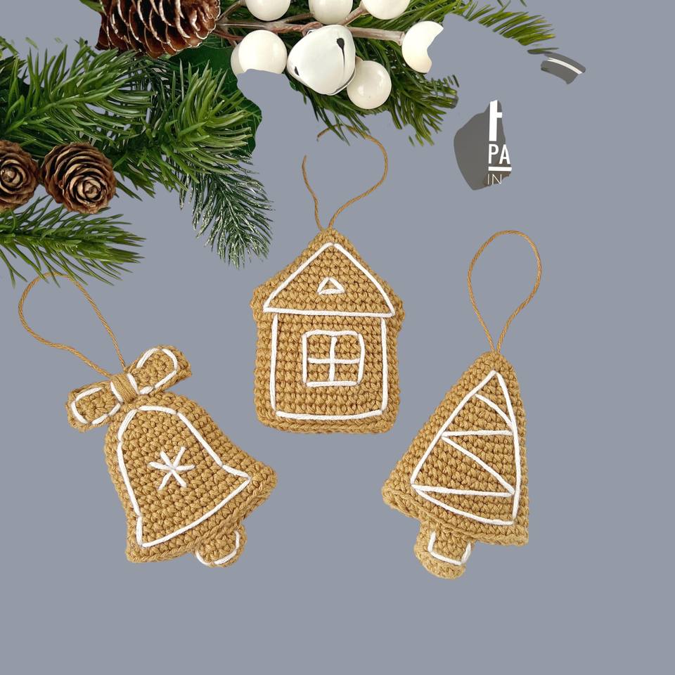 ชุดเครื่องประดับตกแต่งคริสต์มาสแบบแขวน – บ้านปักลายทำมือ กระดิ่ง และของตกแต่งต้นไม้ สำหรับตกแต่งบ้านในช่วงเทศกาล