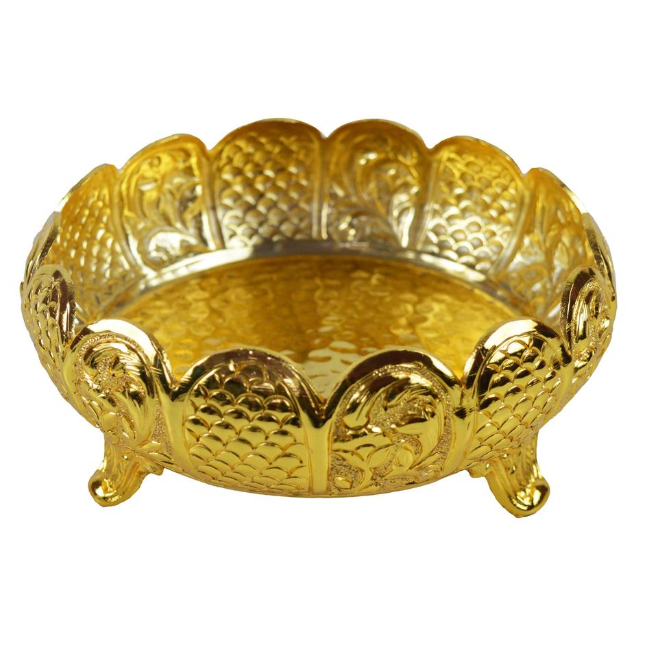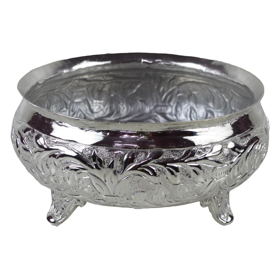 Urli โลหะรูปทรงถ้วยเงินสำหรับตกแต่งเทศกาลคริสต์มาสและดิวาลีดีไซน์แบบใช้ค้อน