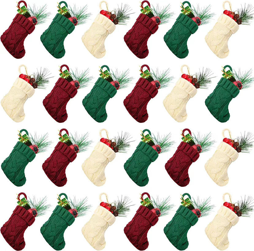ของตกแต่งคริสต์มาส สไตล์ยุโรปและอเมริกา เชือกบิดสีพื้น สำหรับตกแต่งต้นคริสต์มาส ของขวัญสำหรับเด็ก ถุงเท้าคริสต์มาส