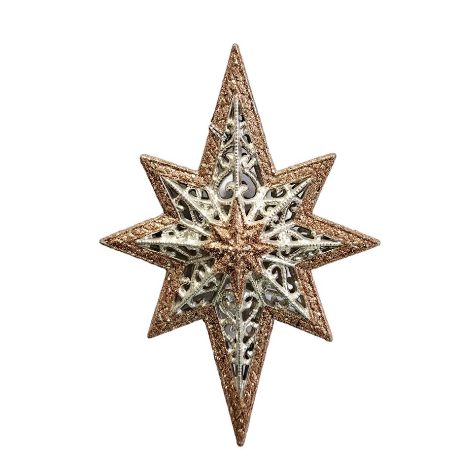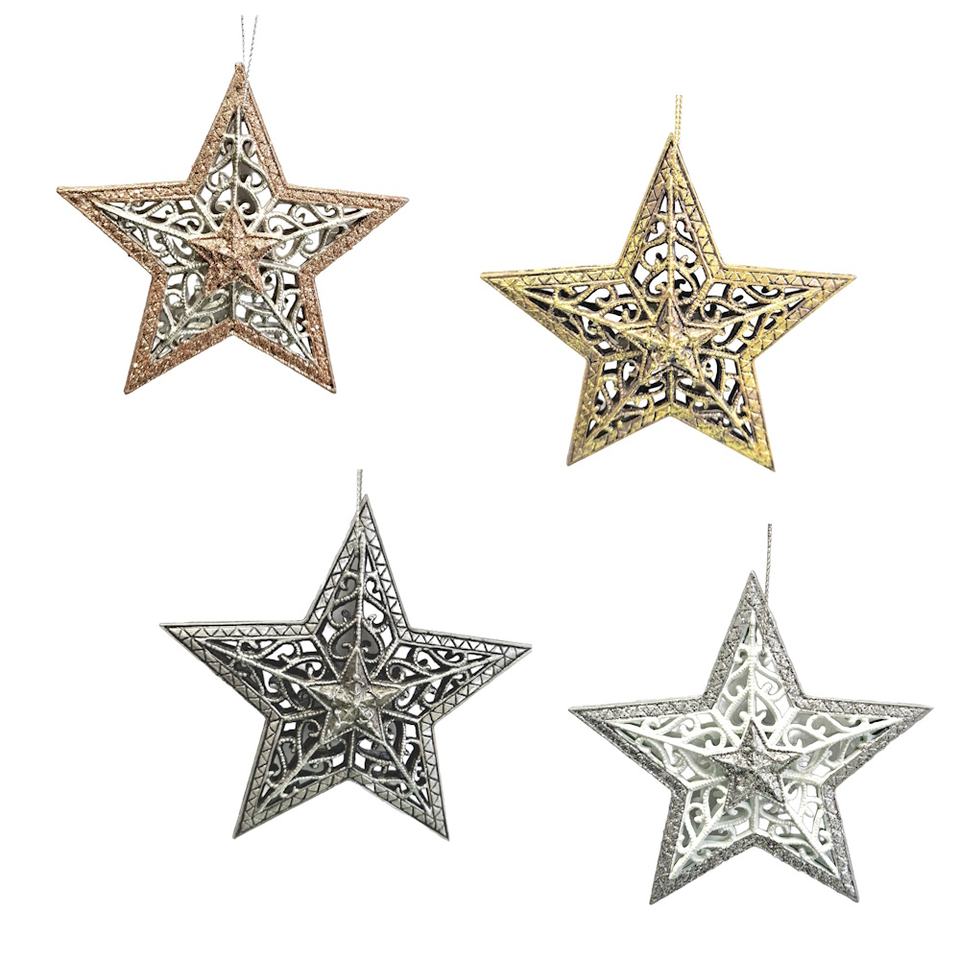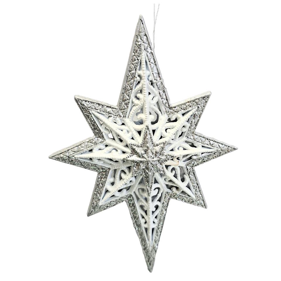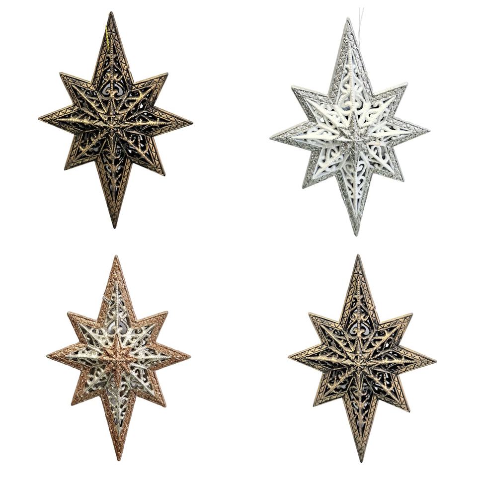 8-Point Star Christmas Ornament Plastic Hanging Decoration with Different Color Finishing for Holiday Supplies