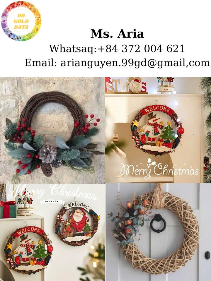 ของตกแต่งคริสต์มาสพวงมาลัยหวายสานธรรมชาติจากเวียดนามสำหรับงานปาร์ตี้คริสต์มาสที่แขวนผนัง