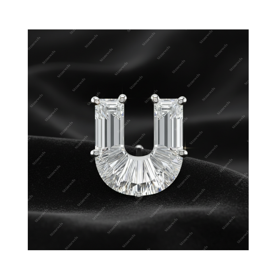 Product Name:Solid Lab Grown Initial Alphabet Letter U Shape Diamond Earring