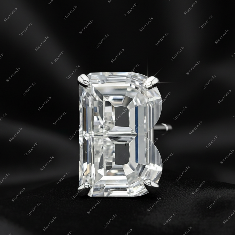 Product Name:Solid Lab Grown Initial Alphabet Letter B Shape Diamond Earring