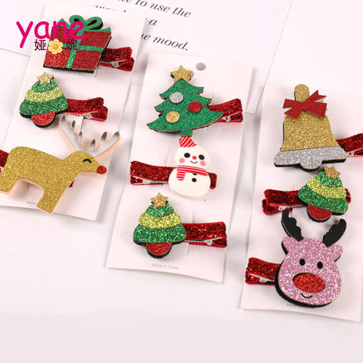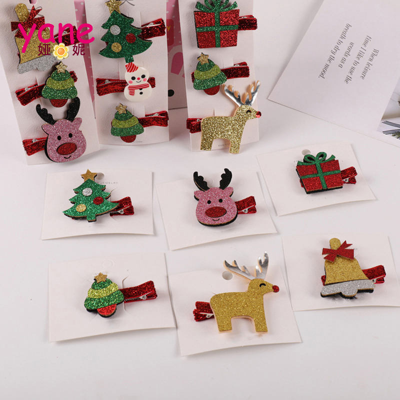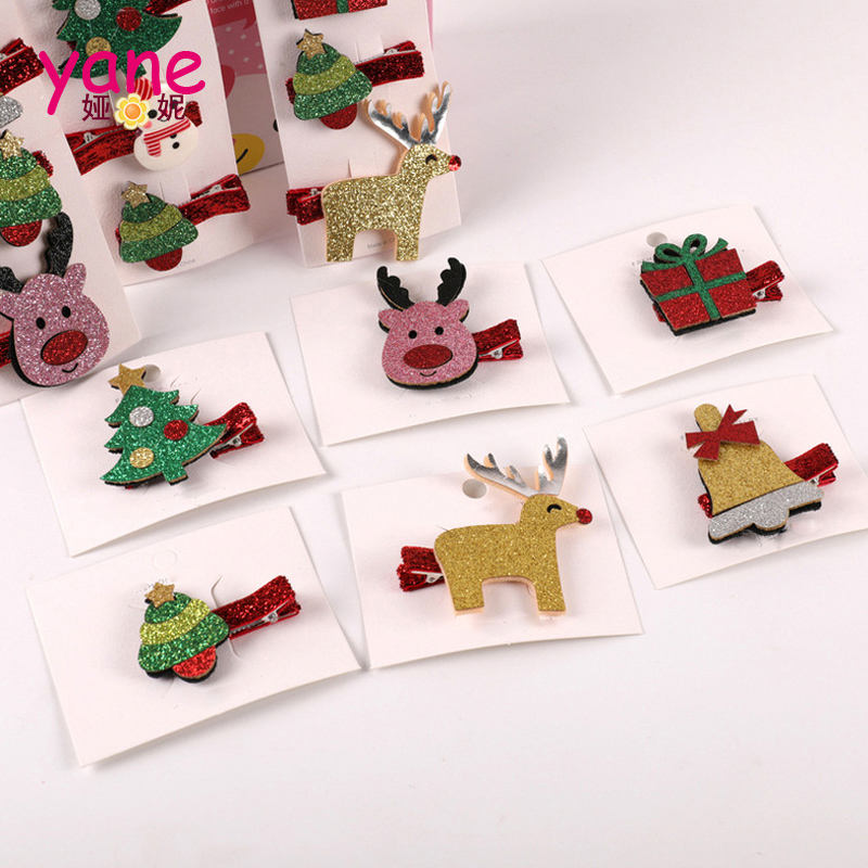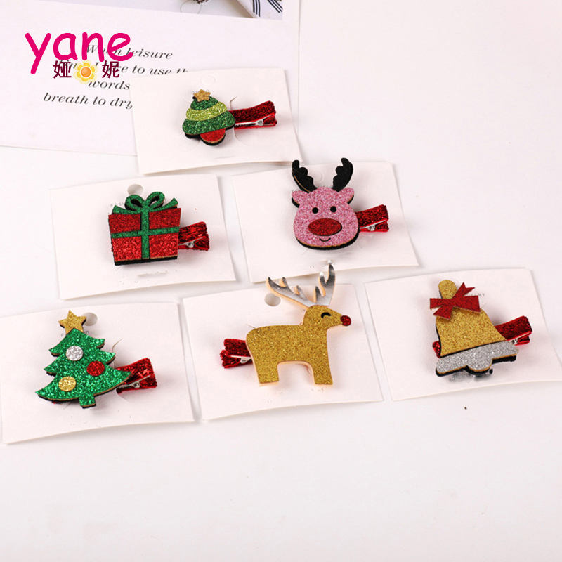 Christmas glitter clips for girls hair pin new design deer trees