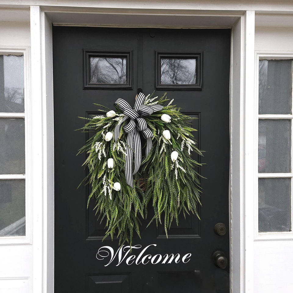 พวงหรีดใบต้นหลิวดอกทิวลิปคริสต์มาสสำหรับตกแต่งประตู