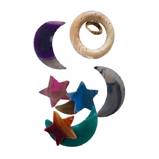 กระดิ่งลมคริสมาสต์หลากสีอาเกตจีโอดฮาเกตกระดิ่งลมดาวพระจันทร์ครึ่งดวงทำจากอาเกตสีสันสดใสสำหรับตกแต่งบ้านขายส่ง