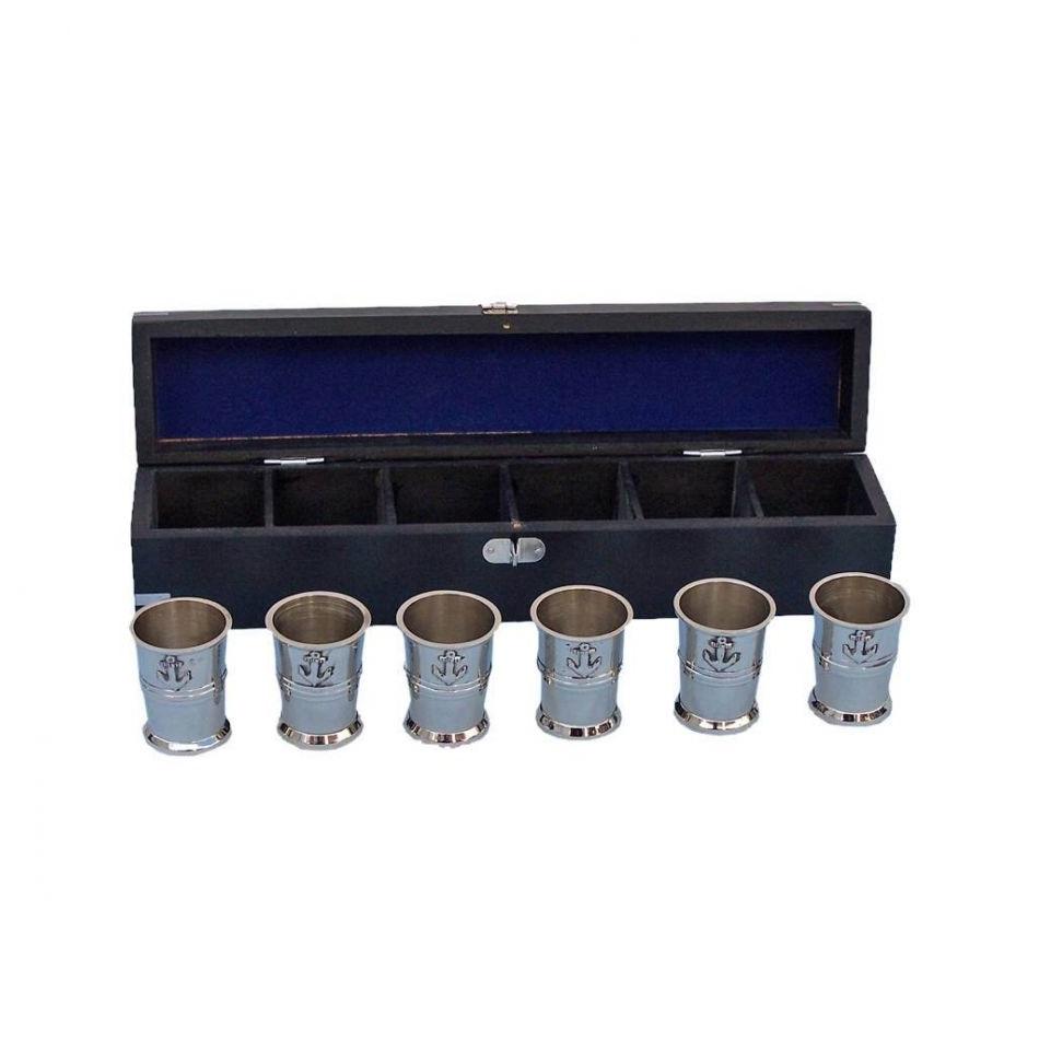 แว่นตาทรงสมอเรือโครเมี่ยมสำหรับยิง,แก้วสำหรับใส่เครื่องดื่มค็อกเทลชาวเรือพร้อมกล่องไม้อุปกรณ์เสริมสำหรับบาร์
