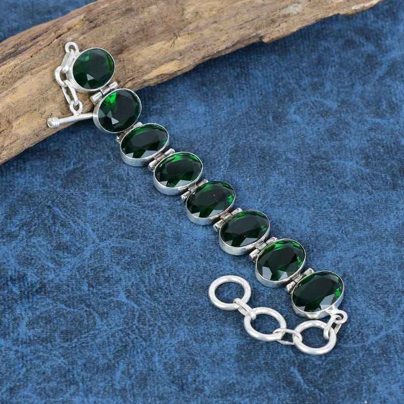 สร้อยข้อมือพลอยดิออพไซด์ชุบโครเมียม925เงินสเตอร์ลิงปรับได้โซ่คริสเตียนของขวัญสำหรับงานแต่งงาน