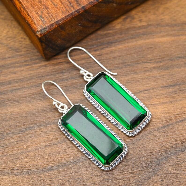 ต่างหูพลอยโครเมียมไดโอไซด์ชุบทอง 24K ทำด้วยมือ สง่างาม เงินแท้ 925 เครื่องประดับหรูหราจากธรรมชาติ ของขวัญวันขอบคุณพระเจ้า