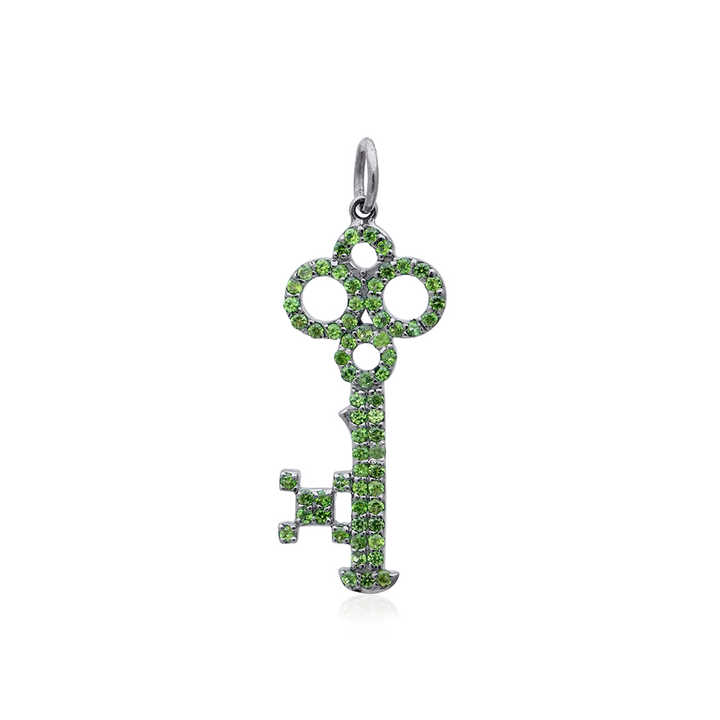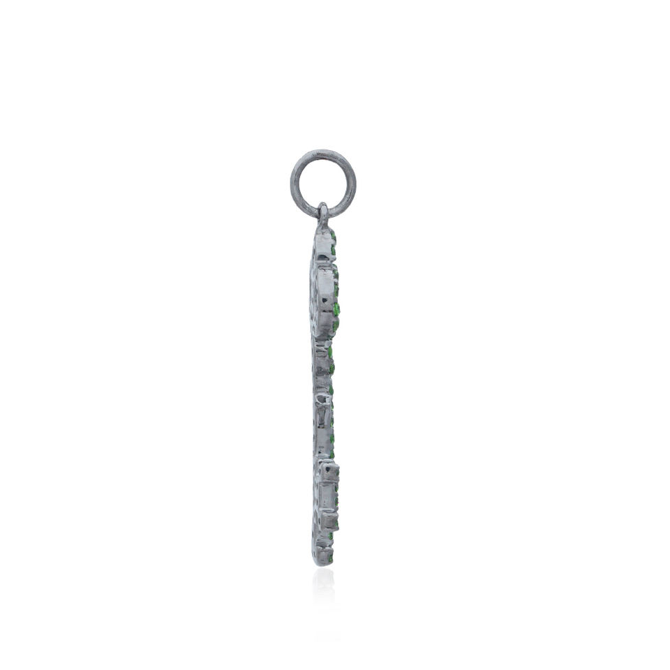 โครเมี่ยม Diopside พลอยออกซิไดซ์925เงินออกแบบที่สำคัญเสน่ห์ Unisex จี้สร้อยคอเครื่องประดับขายส่ง