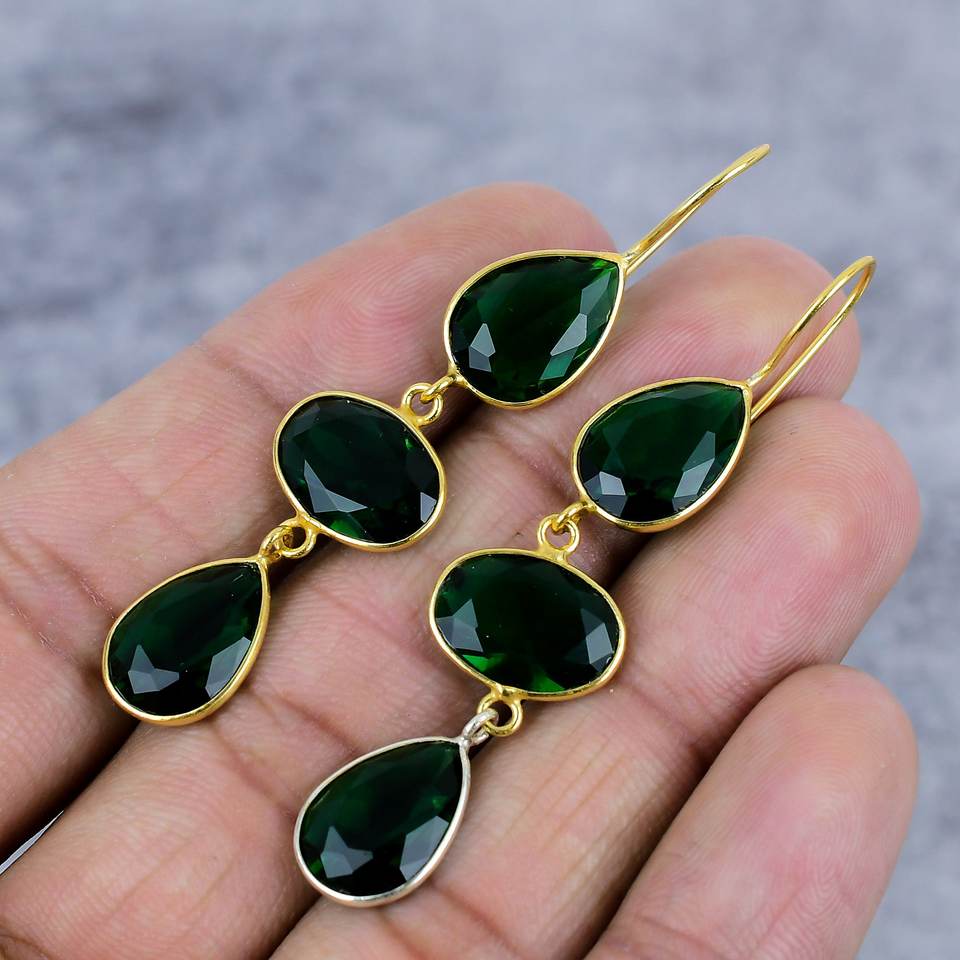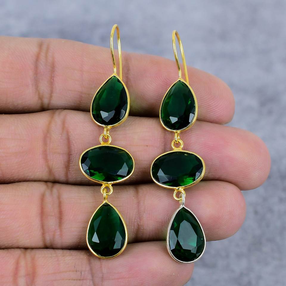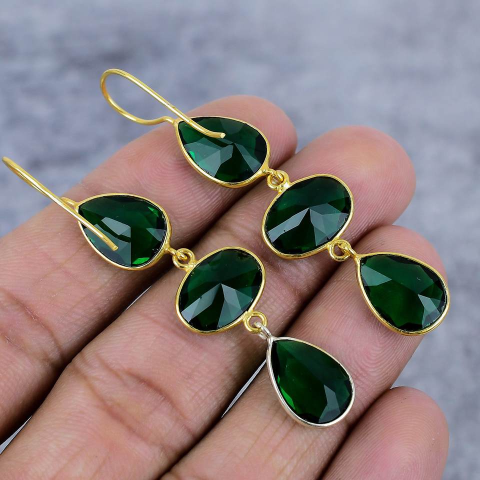 ลูกแพร์และพลอยรูปวงรีทำจากโครเมี่ยม925สเตอร์ลิงและต่างหูลวดชุบทองคำของขวัญสุดพิเศษสำหรับเธอ