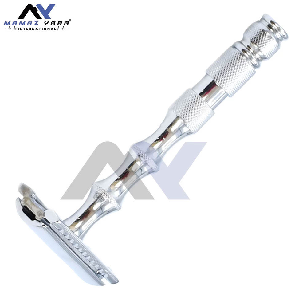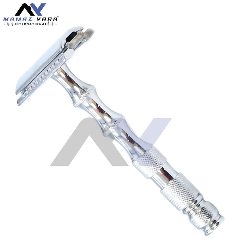 Chrome Double Edge Safety Razor Stylish Long Handle Gentle and Stylish Shaving Experience - Men's Grooming Barber Shops