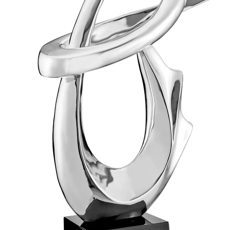 ประติมากรรมของเหลวโครเมี่ยมนามธรรมตั้งพื้นสีดำสูงตกแต่งทันสมัยห้องนั่งเล่นสำนักงานสีเงินประติมากรรมขัดทันสมัย