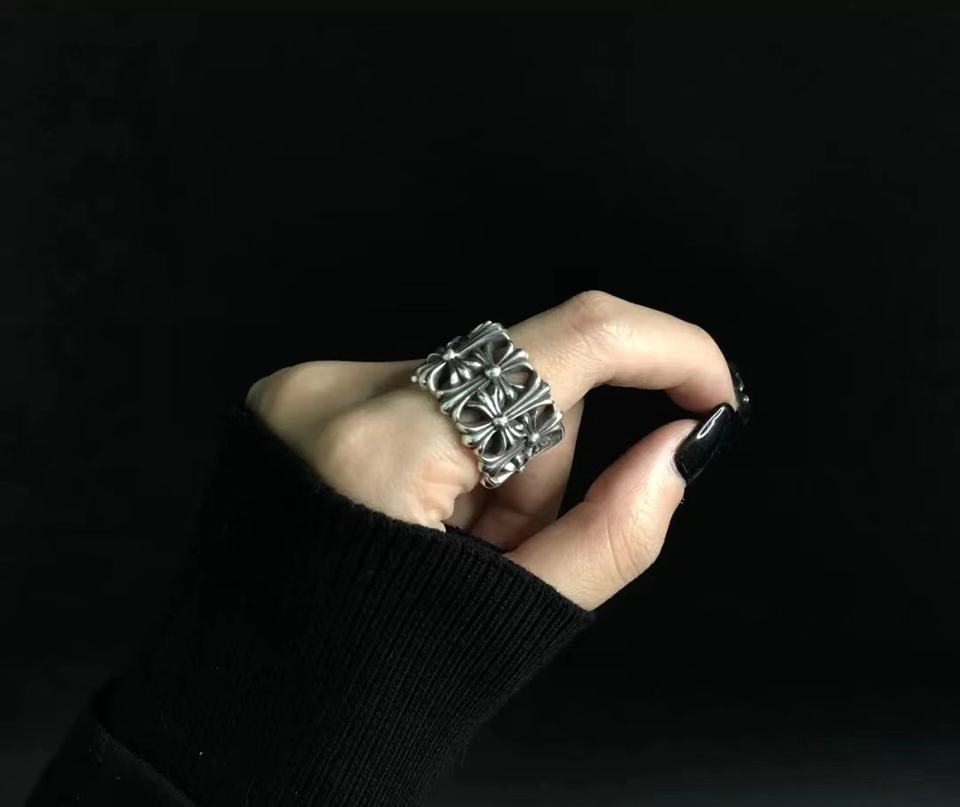 แหวนรูปกางเขนสไตล์โครมฮาร์ท วินเทจ พังก์ ฮิปฮอป สำหรับผู้ชายและผู้หญิง
